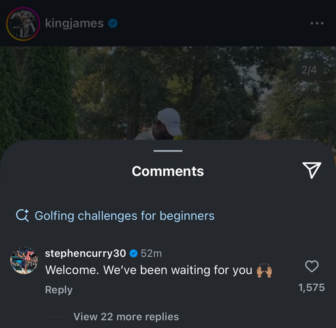 随后库里也是在下面留言:“欢迎,我们一直在等你。”