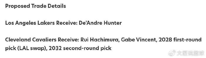 骑士得到:八村垒+文森特+28年湖人首轮互换+32年次轮签。